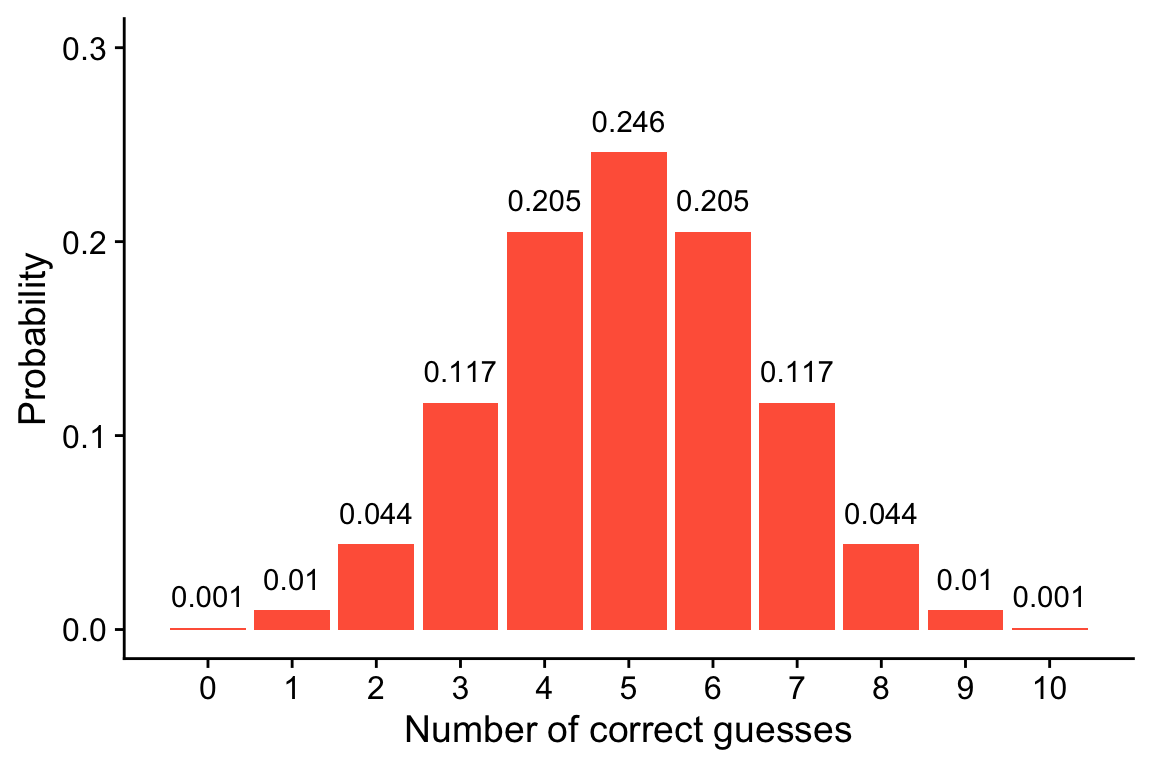 Out of 10 trials, I got 7 right. My “scientific” hypothesis is that I still know how to ID spiders, but statistically, is that really supported by these data?