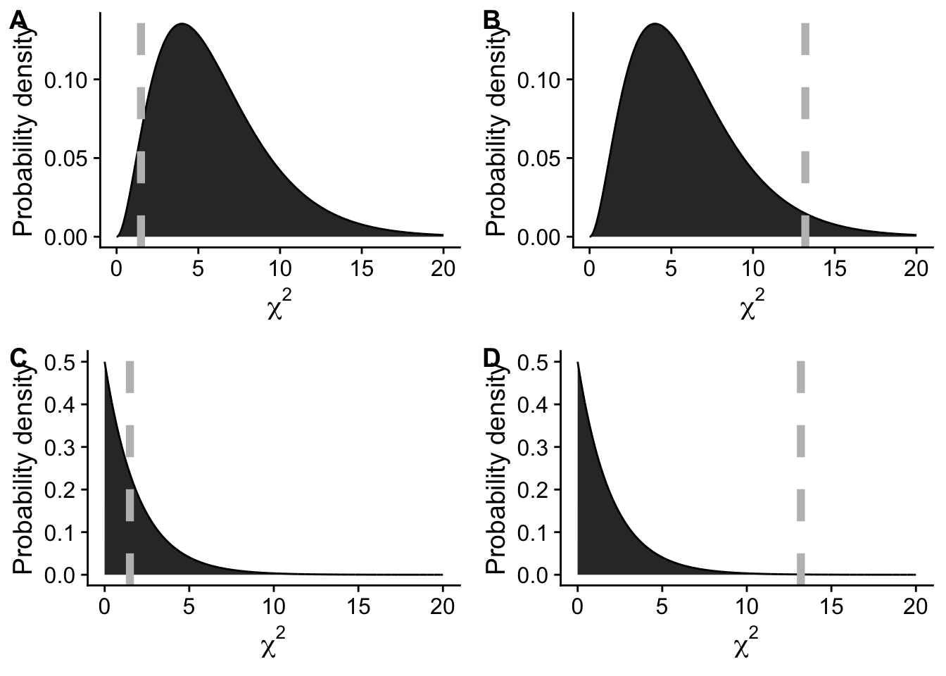 7 Hypothesis tests with a \(\chi^2\) null distribution