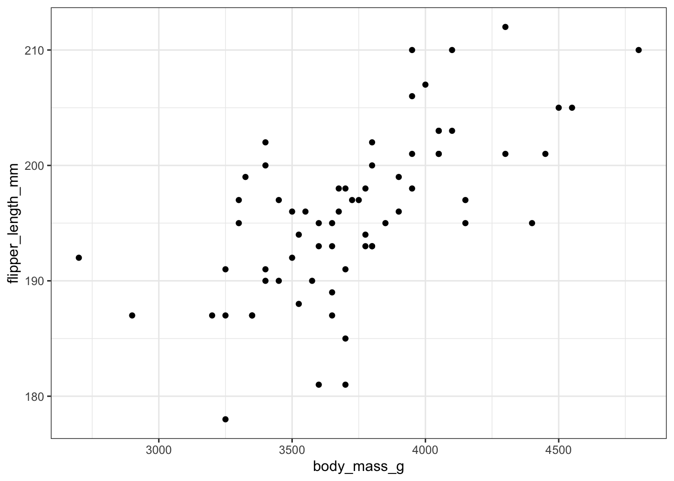 ggplot(chinstrap, aes(x = body_mass_g, y = flipper_length_mm)) +