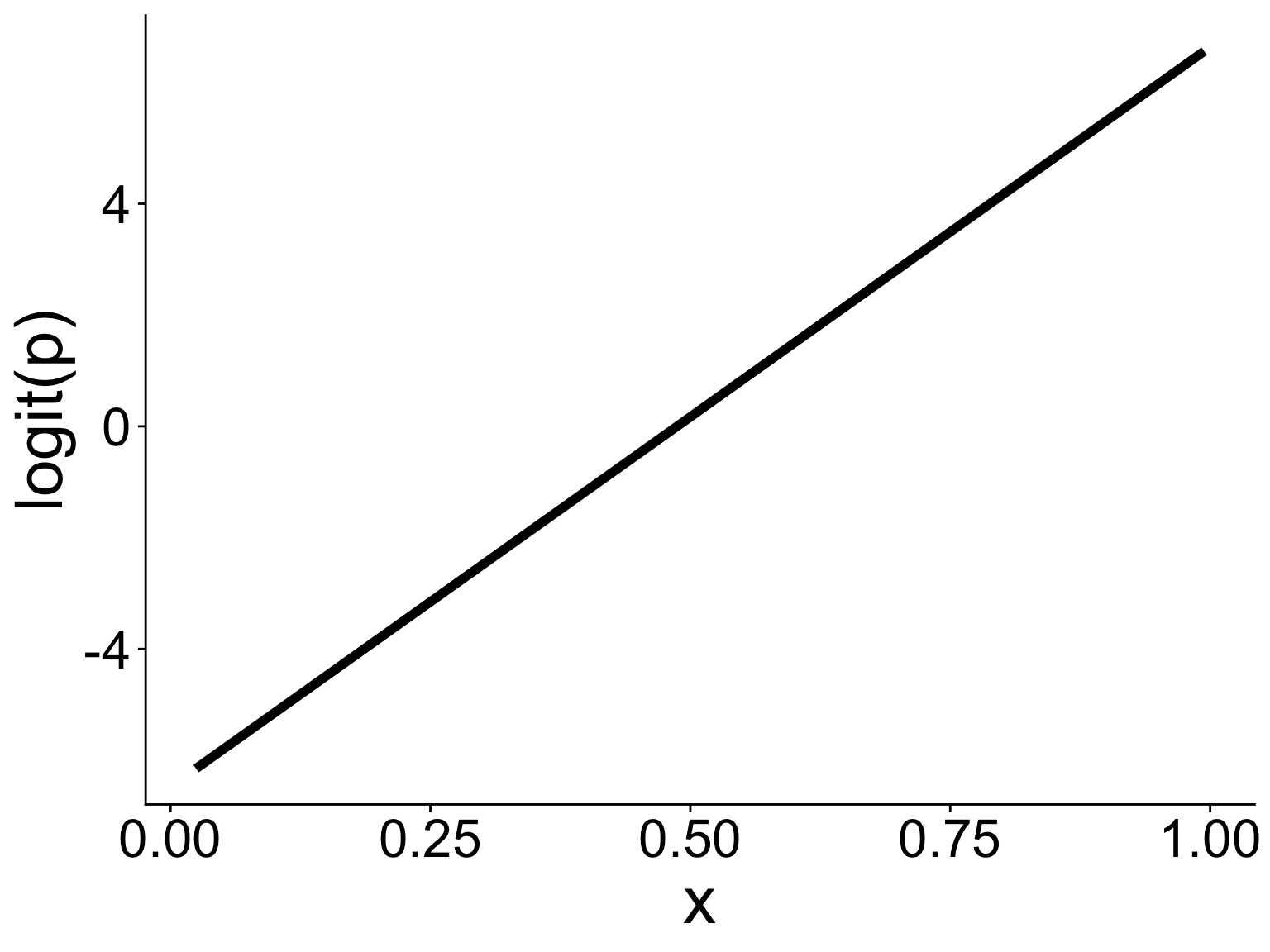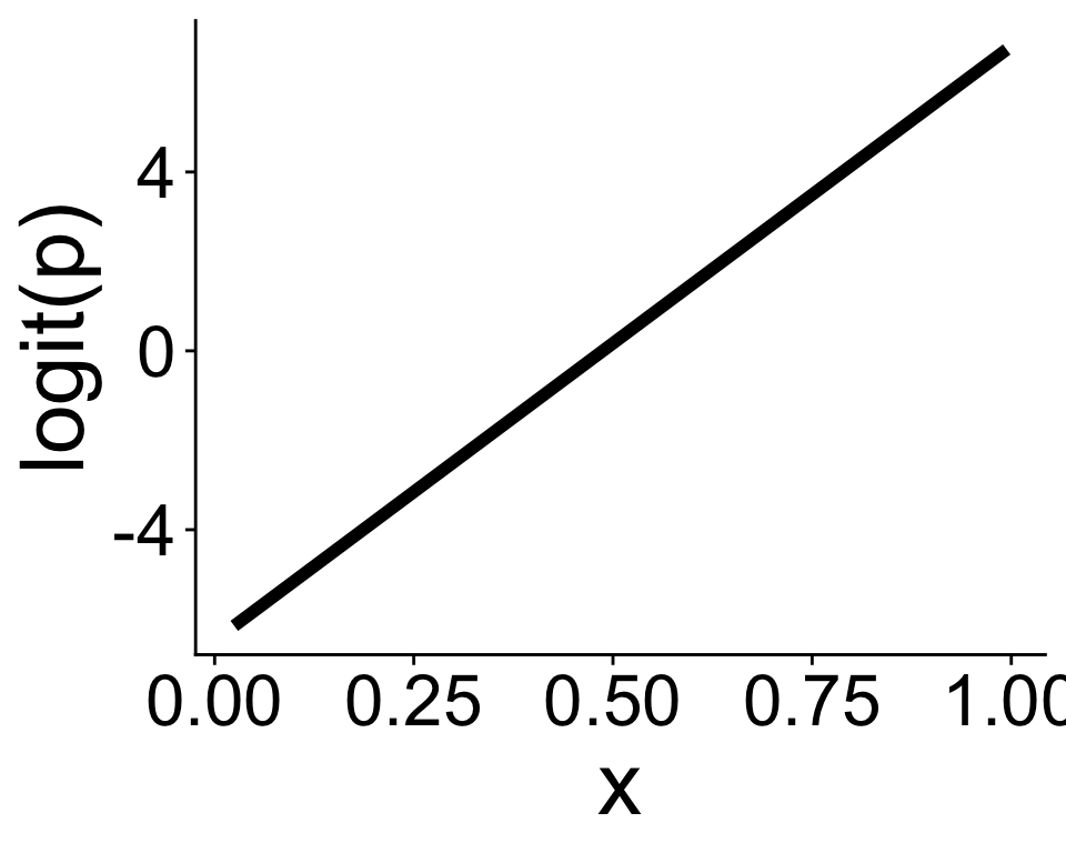 \[ \text{logit}(p) = b_0 + b_1 x \]