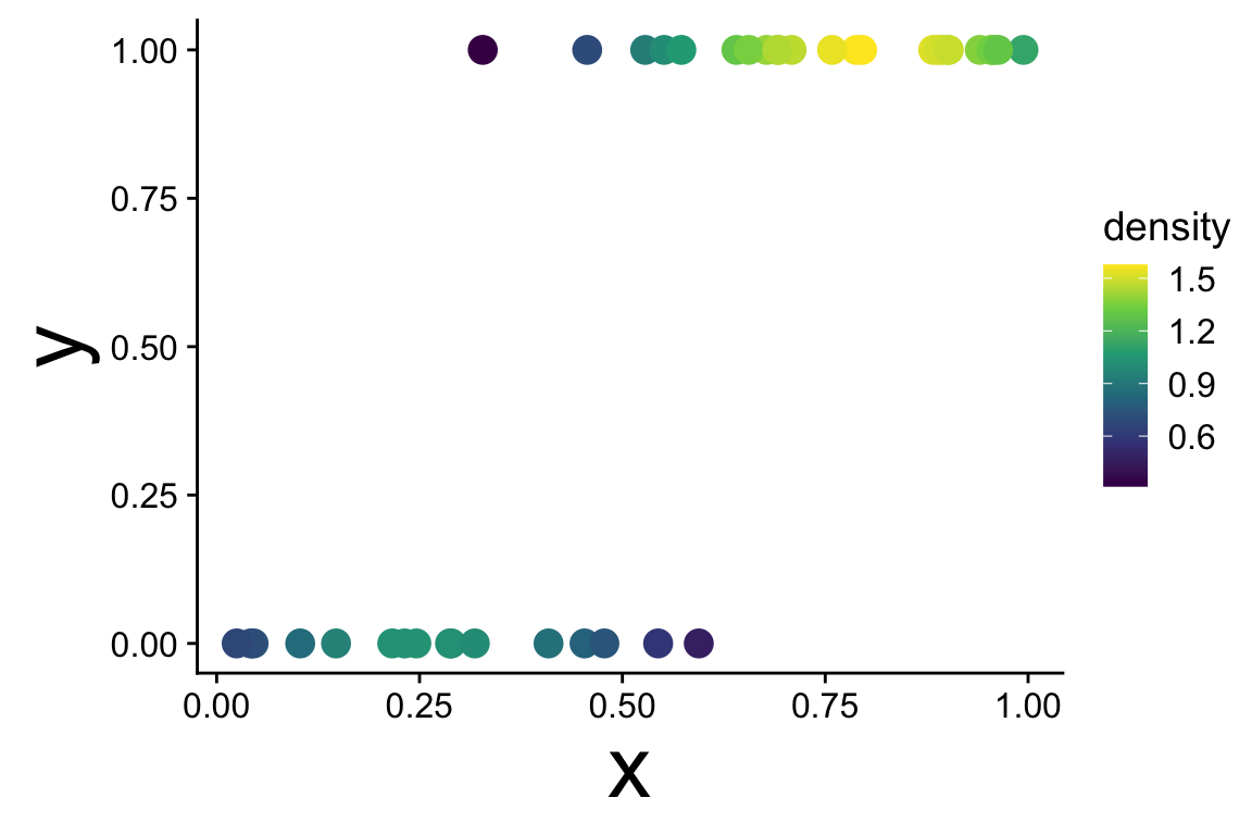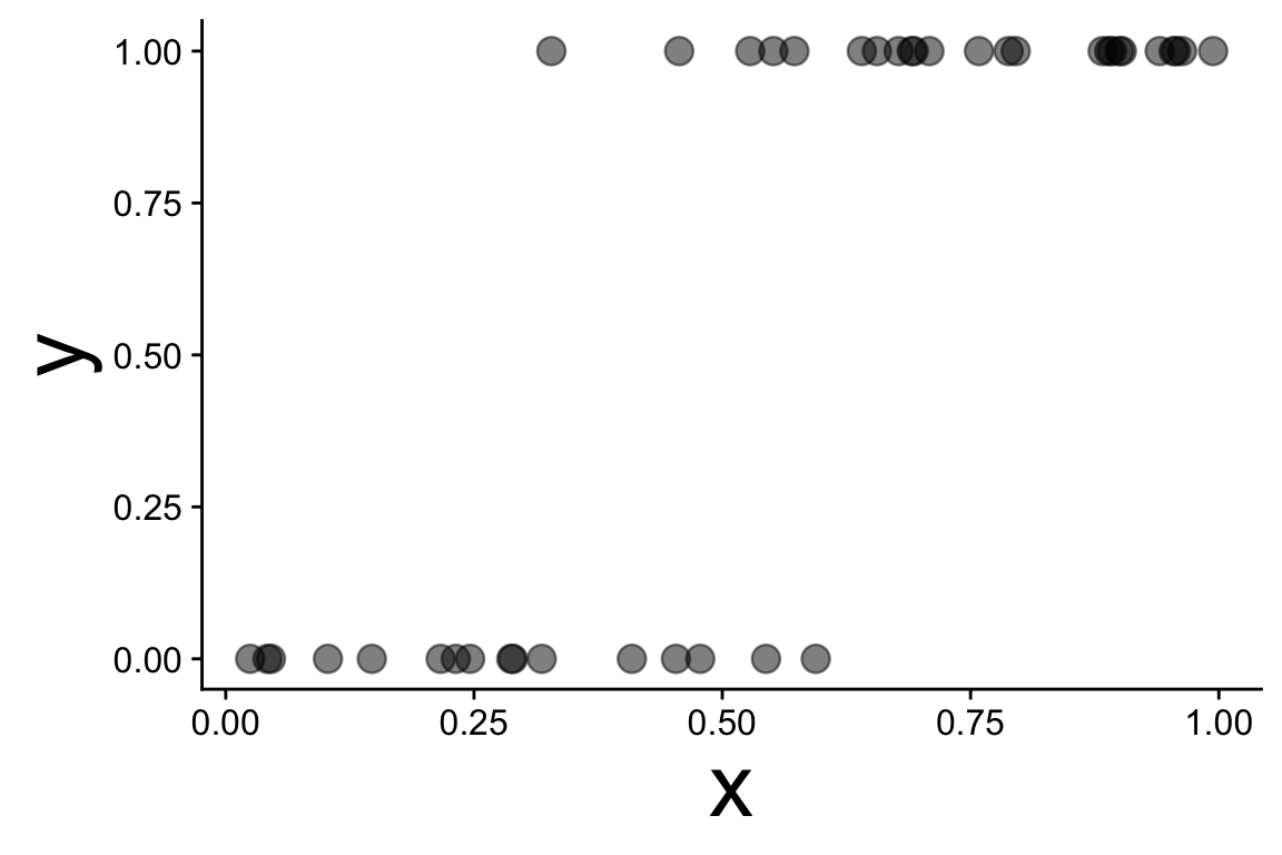\[ y \sim \text{Binom}(p,~N = 1) \]