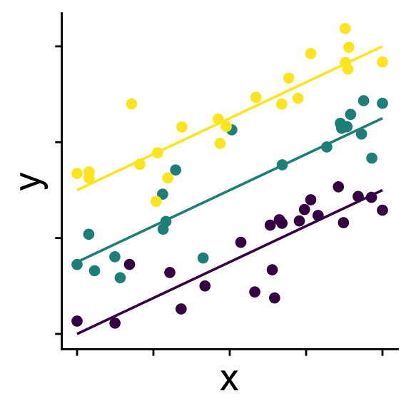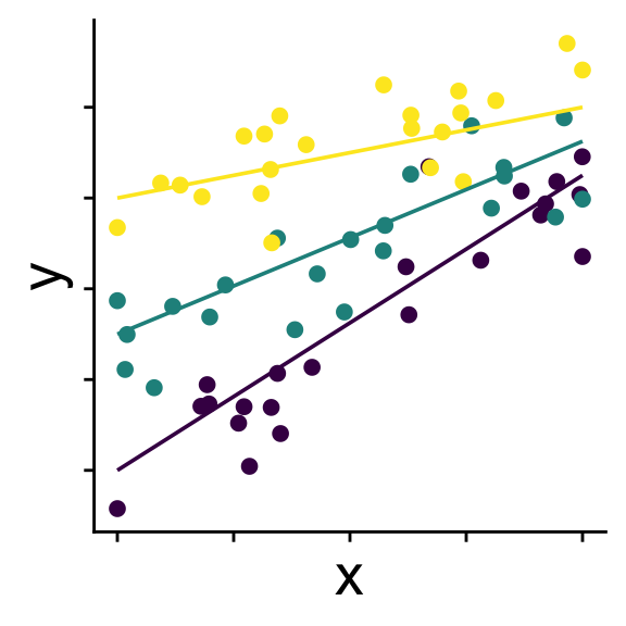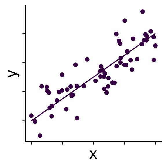 \[ \begin{aligned} \bar{y} &= b_0 + b_1 x \\ y_i &\sim \mathcal{N}(\bar{y},~\sigma) \end{aligned} \]