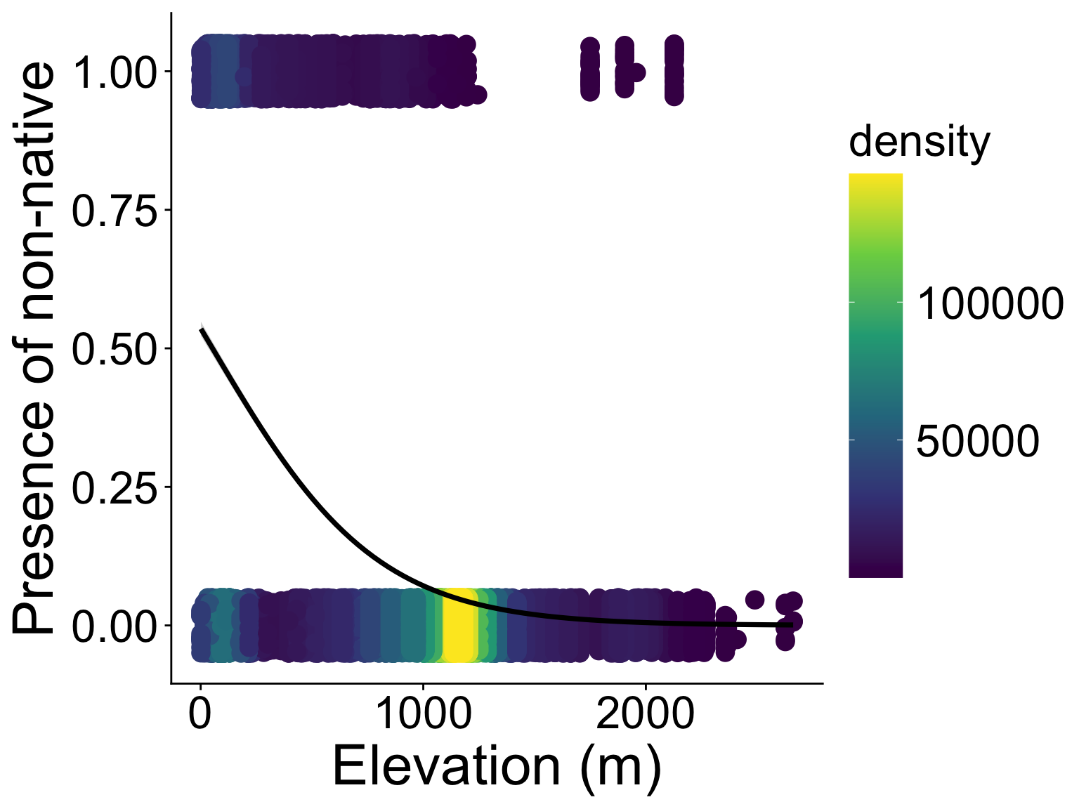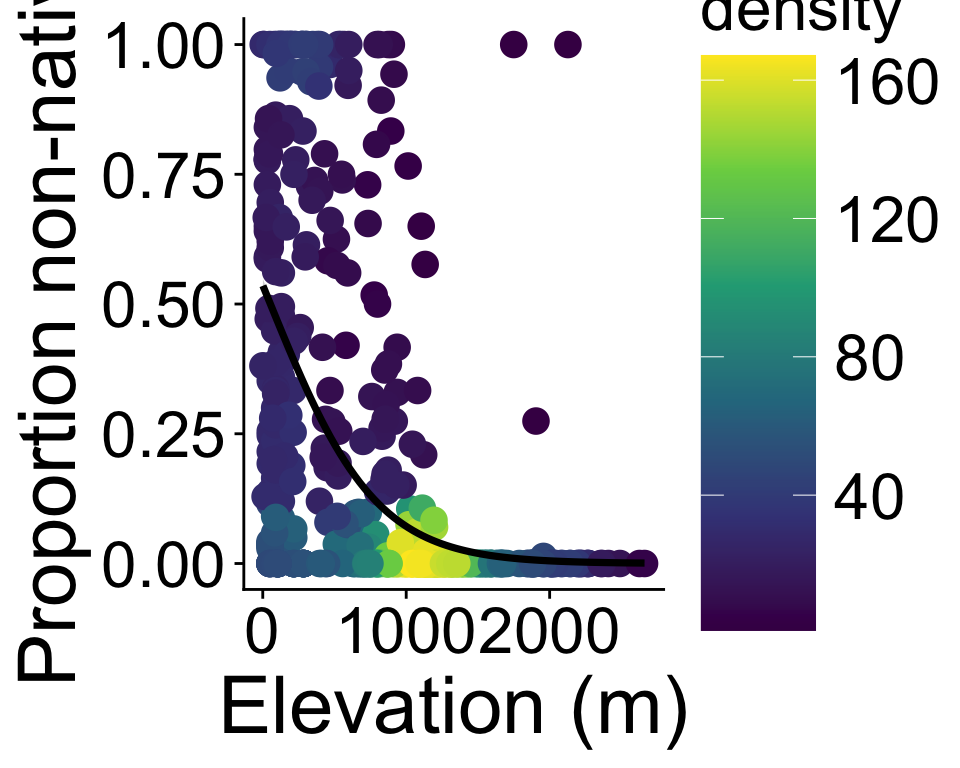 ggplot(tree_plot, aes(elev_m, num_non / num_tre,