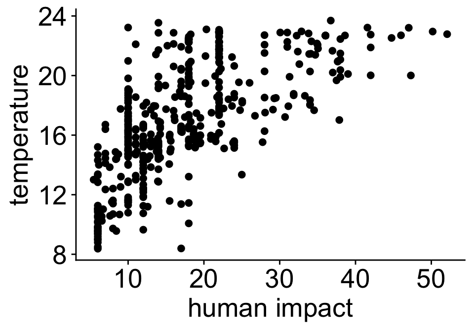 Human impact and temperature are correlated
