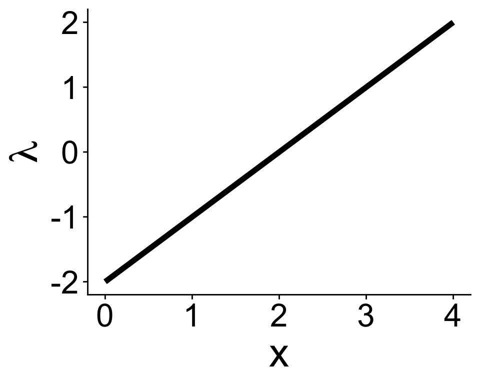 \[ \lambda = b_0 + b_1 x \]