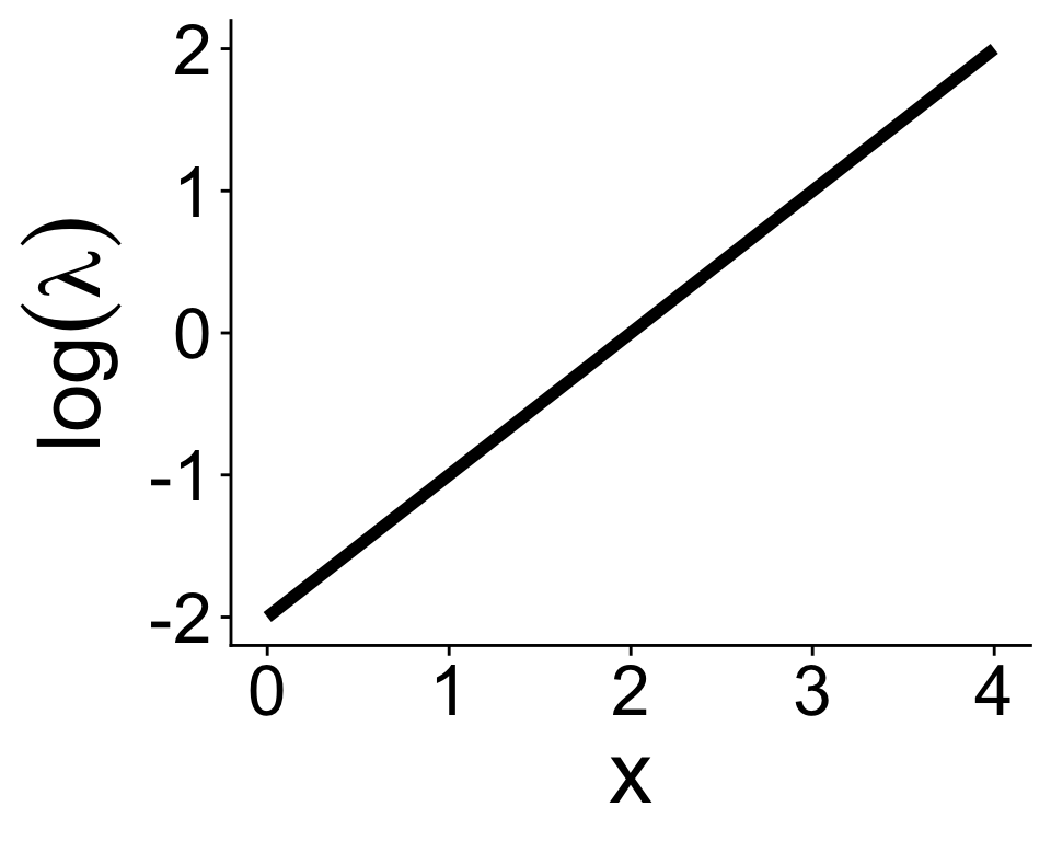\[ \log(\lambda) = b_0 + b_1 x \]