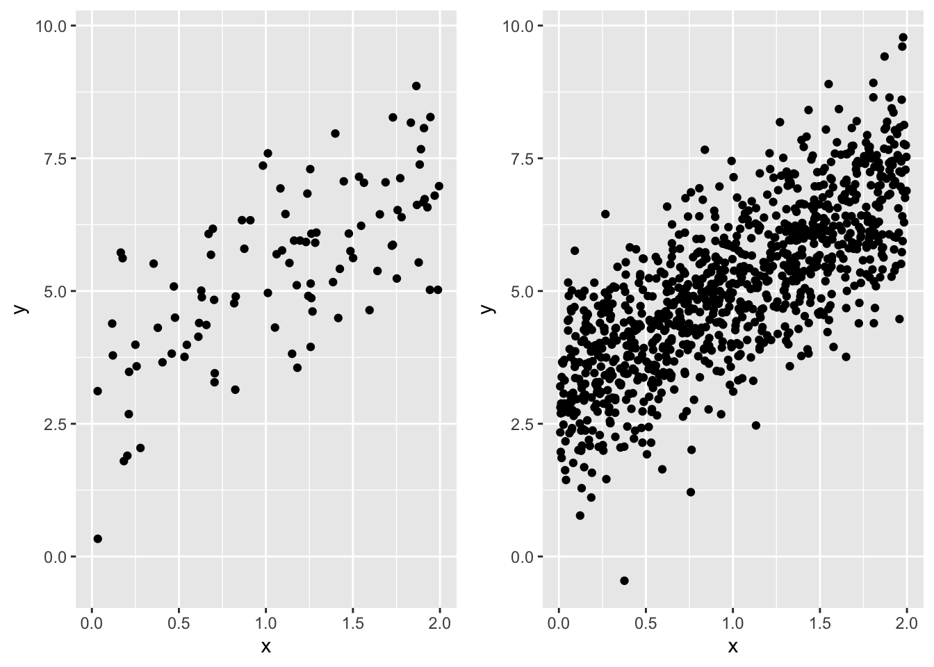 ylim(range(dat_100$y, dat_1000$y))